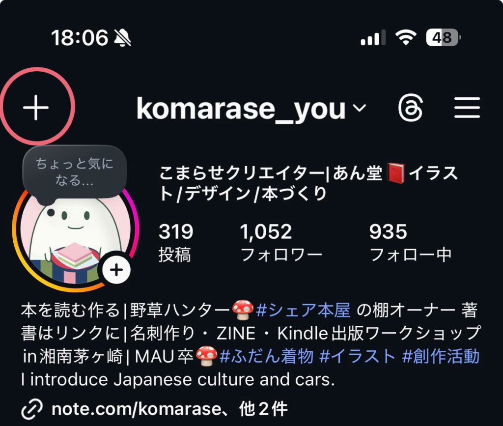 アプリ下部の中央にある「+(作成)」ボタンをタップします。